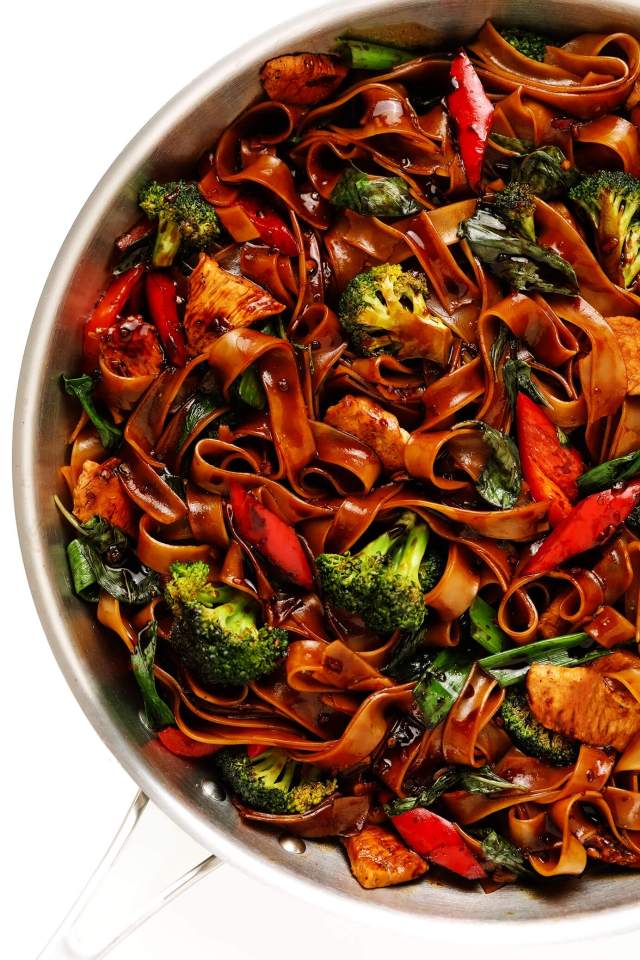 This drunken noodle recipe from Gimme Some Oven is definitely family friendly, despite the name. Made without alcohol, the noodle-meat-veggie dish is polished off with a delicious sauce made with Thai basil, giving it that extra kick.