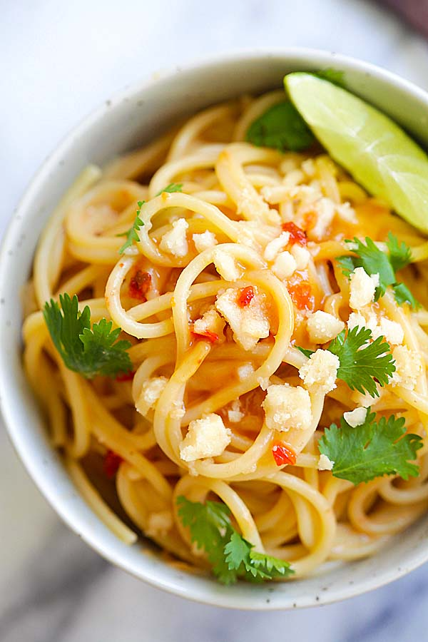 It takes just four ingredients and 15 minutes to get this recipe from Rasa Malaysia on the table. Even better? You can use American ingredients you probably already have on hand, like spaghetti noodles!