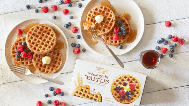 Frozen waffles are a go-to breakfast for busy mornings, so swap out the standard Eggo for this whole-grain version from Trader Joe’s. Top them with peanut butter, or go savory and sweet by topping them with another great Trader Joe’s breakfast item, the Chicken Breakfast Sausage Patty, and maple syrup.