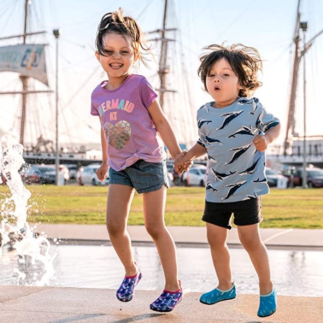 Simple but effective, these non-slip water shoes are perfect for on-the-go or travel, as they easily fold up and the rubber sole means kids can walk on wet surfaces with ease.