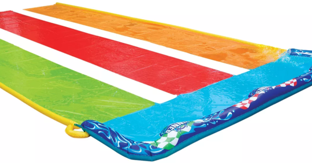 Don’t worry about tricky set-ups that require hours of inflation or come with complex instructions. This slip and slide easily attaches to your garden hose and comes with four stakes to grip the sides to the ground.