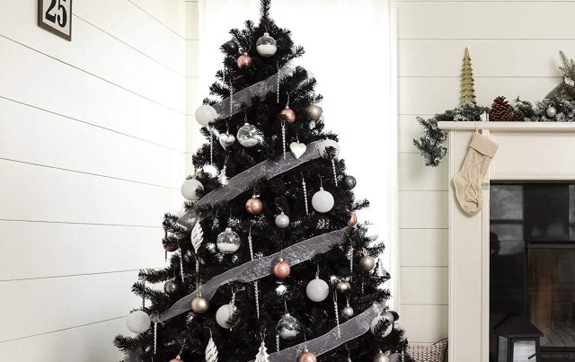 If you’re not ready to ditch your typical holiday greenery for something darker, check out Best Choice Product’s black artificial Christmas tree on Amazon. This six-foot tree comes with 1,477 tips (or you can get a seven-and-a-half-foot version with 1,749 tips) and plenty of holiday style.