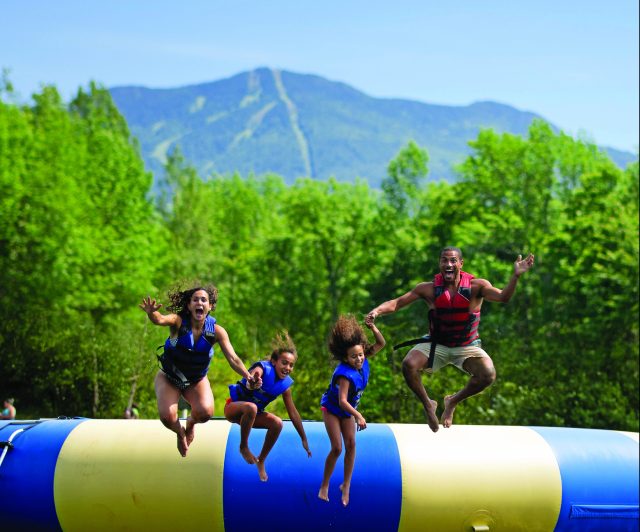 8 pools + 4 waterslides + 2 freshwater swimming reservoirs = endless water fun at “Smuggs.” A fan favorite is Bootleggers Basin, a freshwater swimming reservoir, complete with a swimming area, picnic spots, and the Aqua Jump Trampoline (for ages 7+). Rent kayaks and stand-up paddleboards to explore the water and breathtaking Vermont scenery. Swim at the Courtside outdoor (heated!) pool for family fun, and enjoy thrilling rides down the Flume Waterslide. If your kids need a swimming refresher course, the resort offers 30 minute private or semi-private swim lessons. The youngest guests will have a blast on the Turtle Mini-Waterslide, along with the fountains, waterfalls, and lazy river at Little Smugglers’ Lagoon. Kiddos love crossing the floating Lily Pads at Notchville Park, diving under waterfalls at the Cascade Pool, and getting soaked at the Splashville Splash Pad (great for the 6 and under set!).