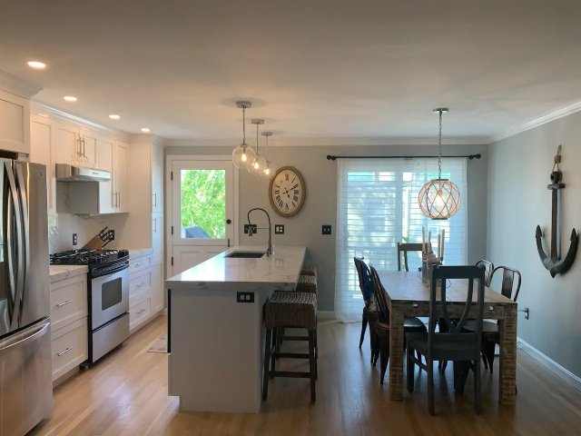 You'll definitely feel the New England vibes of this 4-bed, 3-bath house located in the quiet hamlet of North Andover. Enjoy the pool and hot tub while you are grilling and then take on the kids in a game of volleyball or badminton. There's a children's park just a short walk away and don't miss a stop at Cows Rock for ice cream.