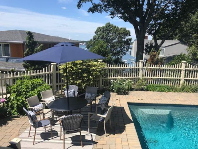You'll have ocean views as you dine by this home's in-ground pool. The whole family will love it! Overlooking Salem Harbor, this apartment is on the first floor with some of the best views! Neighborhood beach access is a block away and the Marblehead public boat landing is a short 5-minute walk.