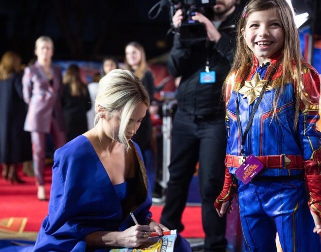 The future journalist also had the opportunity to interview the film’s directors Anna Boden and Ryan Fleck, as well as Samuel L. Jackson, who plays Agent Nick Fury. But it was clear by the smile other face as Larson signed an autograph that meeting Captain Marvel was the highlight of the evening.