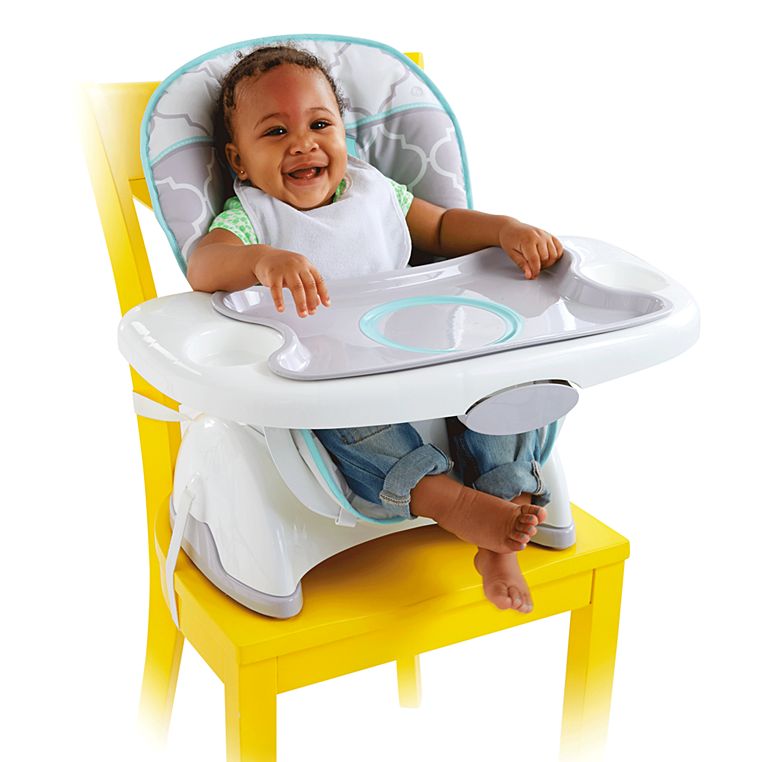 If you have two kids in high chairs, space around the dinner table will be at a premium. Don’t let the compact size of this high chair fool you: It offers all the comforts of a standard full-size high chair, including a three-position recline and two possible height adjustments. It features a full-size feeding tray, an adjustable five-point restraint and a spacious contoured seat with cushioned seat pad in a gender-neutral pattern. Available at bedbathandbeyond.com, $69.99.