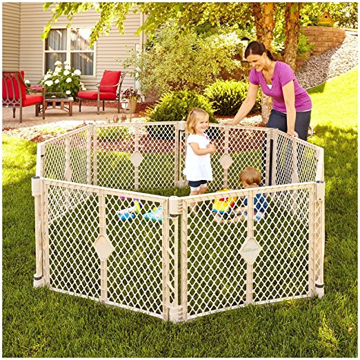 Depending on the age of your older child(ren), you might have to keep a tiny infant safe from energetic big-kid play. This portable yard (available with six or eight panels) sets up in seconds, and includes a convenient carry handle so you can take it anywhere, inside or outside. It also features an easy-access entry and non-slip pads that work on any surface and will not scratch hardwood floors. Available at amazon.com, $70.46.