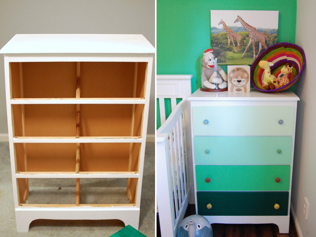 Give grandma’s old dresser a new look with a fresh coat of paint in fresh, modern colors using Still Being Molly's tutorial. She also re-did her childhood bookshelf with the same stunning green ombré results here.