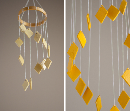 It's amazing how much time our sweet babies spend staring up at the ceiling. We think this clay chandelier mobile from the super talented crew at Design Mom is a genius way to add color and whimsy to your nursery without breaking the piggy bank.
