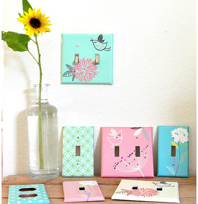 Dress up white walls with fun and funky outlet covers. This quick and easy makeover turns your plain switch plates into creative pieces of art. All you need is decorative paper and Mod Podge. Visit The 36th Avenue for all the details.