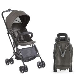 Calling all jet-setters! You’ll look the part with this slick travel stroller that folds so compactly it fits into the overhead bins on most airlines. It also stands upright when folded for convenience while traveling or to store in a small space at home. Three sun visors let you customize your baby’s sun protection and UV coverage. Comes in charcoal, midnight blue and olive green.