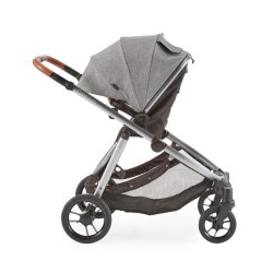 Already a fan of the Sibby? The travel system has been updated with comfortable sport handles, a mesh storage bag in the seat back, and a peekaboo window in the large canopy. The stroller also includes a fold-away ride-along board that older siblings can use to cruise. Comes in three shades of gray.