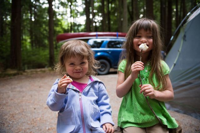 Lunched, changed and ready to go, we set out to explore the area. This is the easy part of camping with tots because there’s so much to do. At most campgrounds, you’ll find all sorts of short hikes, beach walks, nature scavenger hunts and spots for kids to scooter. For our two-year-old, keeping it simple worked best. We threw rocks into the ocean, flew kites on the beach and let her wear herself out on the trails (no backpack needed). Before I knew it, we had missed her nap time and were headed into dinner.