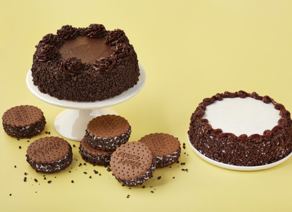 - Crazy for Crunchies Cake – Deluxe cake made with vanilla ice cream, chocolate Crunchies in the middle, and chocolate ice cream on the bottom, loaded with milk fudge, and covered in Crunchies on the side.