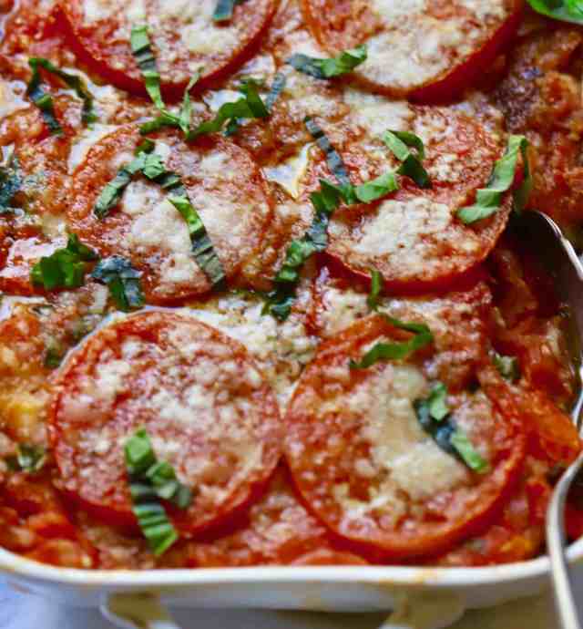Gather tomatoes from your garden and bake them up into a  delicious and healthy casserole. “A handful of panko bread crumbs added to the parmesan cheese topping would be an excellent addition,” recommends Sharon Rigsby of Grits and Pinecones. Get the recipe by clicking here.