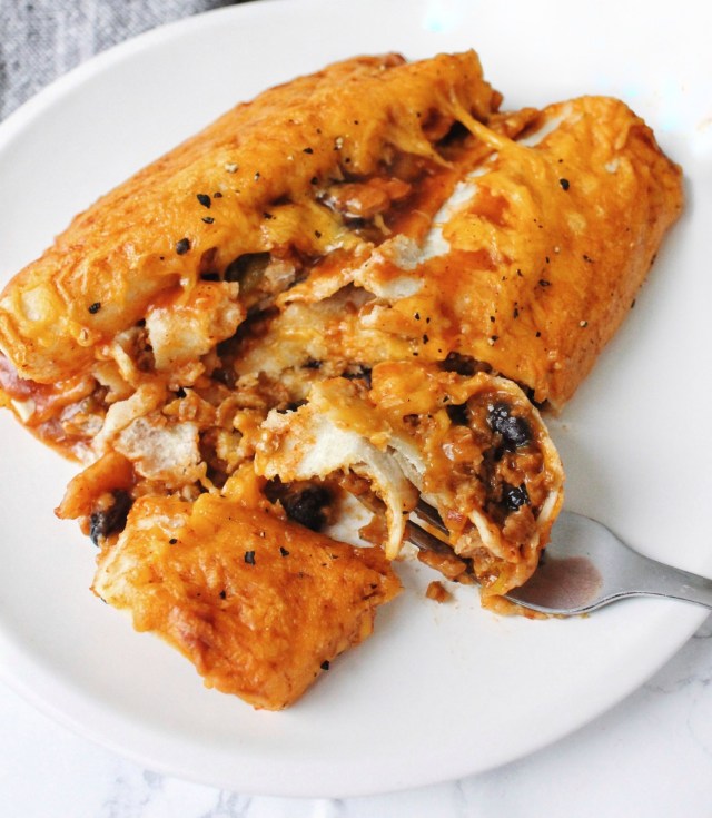 Just six ingredients fall together in these enchiladas,  which are baked for just 25 minutes. Serve with a side of homemade guacamole and chips (plus margaritas for moms and dads!) for a summer dinner to remember. This recipe calls for Loma Linda Taco Filling, but you can use any faux meat you like, seasoned with a dash of chili powder, cumin and paprika. Get the recipe here