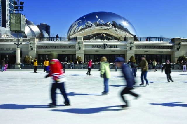 Ice skating at Maggie Daley offers sweet views of the city and ice skating at Millennium Park happens daily in front of "The Bean". Millennium Park even offers free ice skating lessons on Saturdays and Sundays.