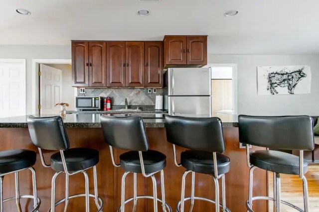 Located in one of Chicago’s most popular neighborhoods, this Airbnb is a true gem. With a whopping nine bedrooms, it’s easy to gather here with your whole family. Enjoy a cup of coffee in the backyard, play a round of pool, or gather around the dining room table and play a board game. This rental, full of art and pops of color, has everything you might need for your multigenerational family vacation.