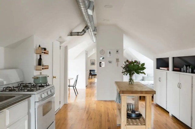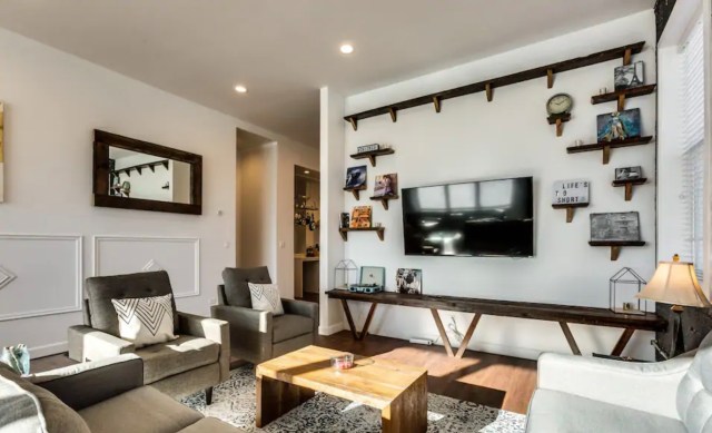 For a four-bedroom and four-bathroom home, this East Village rental is quite affordable. Clean and comfortable, this townhouse has a fully stocked kitchen, fireplace, outside deck, and skyline views. And, if you’re bringing along your pet, you’ll find that the accommodations are restful for Fido as well.