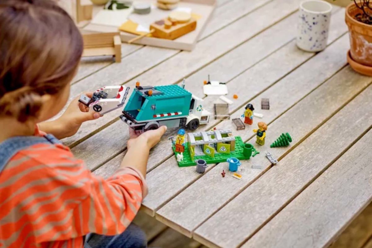 Re-re-re-re-re-recyle! This set comes with loads of realistic features, including a recycling center with 3 containers. The truck features a tipping platform for emptying the containers and a raisable flatbed for offloading. Just add the 3 minifigures and cat figure and let the fun begin.