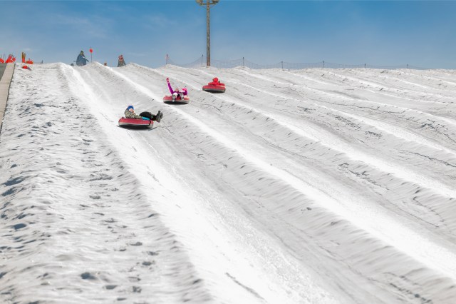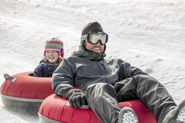 Whether you choose to stay off of skis and boards or want to add something extra, snow tubing is also available. You'll find it just down the road from the skiing/snowboarding area. Dress warm—it’s windy—wear goggles for comfort and visibility, and prepare for a fun nighttime adventure on the 22-lane tubing area. The best part: you won’t have to drag the tube—or yourself—back up the hill. A conveyor belt will do that for you. Afterward, warm up in the tubing lodge and enjoy snacks and hot cocoa.
