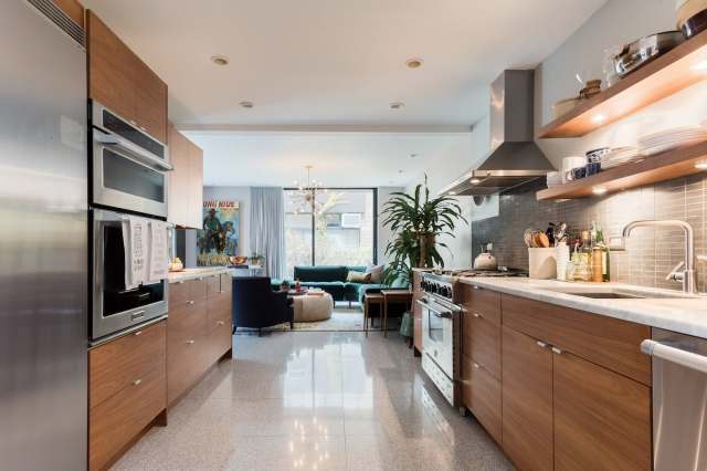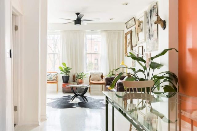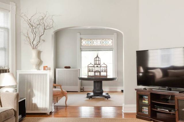 Well priced, this charming Windy City apartment is a little green oasis tucked into a brick building, located near public transportation, and just three blocks from Horner Park, in the Irving Park neighborhood. The black and white interior gives the space a modern and fresh appeal. You’ll want to snap photos of your kids enjoying hot cider at the kitchen table, with a floor-to-ceiling green wall as a backdrop.
