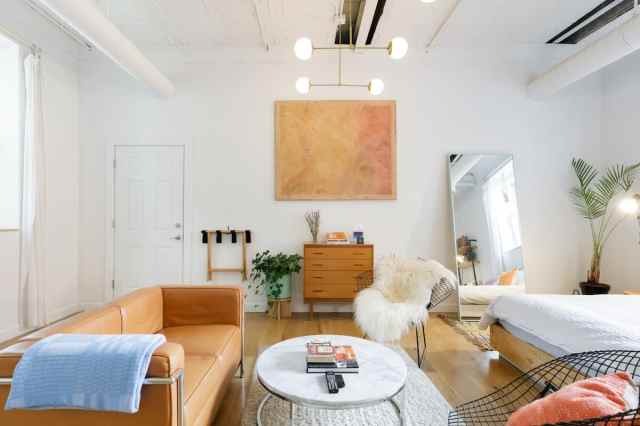 The pops of color bring this Humboldt Park rental to life. Your kiddo will love visiting Humboldt Park, the wintry beach, and the National Museum of Puerto Rican Art and Culture. Hop on nearby public transportation and visit Wicker Park or Bucktown, an easy bus or train ride away. This snug studio has everything you need, and nothing that you don’t. What was once a machine shop is now a well-designed and well-reviewed airy rental.