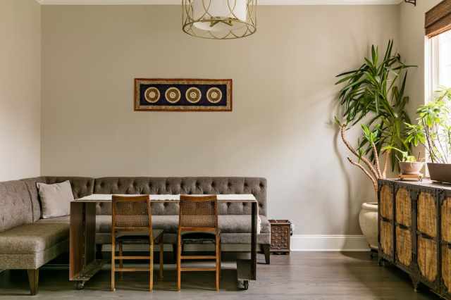 Neutral colors, gorgeous dark wood floors, diverse art, and interesting design features are what you can expect with a stay in this two-bedroom Forest Park home. Gather for cocktails on the roof patio and enjoy the neighborhood views. Curl up by the fireplace with a glass of wine or hot chocolate. There’s a special event space on the first floor for larger gatherings, perfect for inviting the grandparents over. This is the idyllic locale for hunkering down during a Chicago winter, with your extended family in tow.