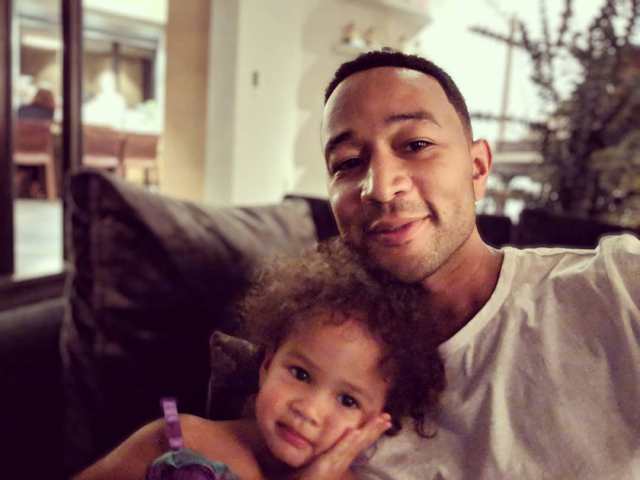 Along with Miles’ milestone, the mama also posted husband John Legend’s “milestone.” Like Miles, John is also pictured wearing a grey sweatsuit and sitting on a bed, surrounded by stuffed animals and children’s books. Just like his son Miles, Legend is also seated next to his very own chalkboard sign. But instead of announcing “I am 9 months” like Miles, Legend’s sign says, “I am 482 months.” Classic!