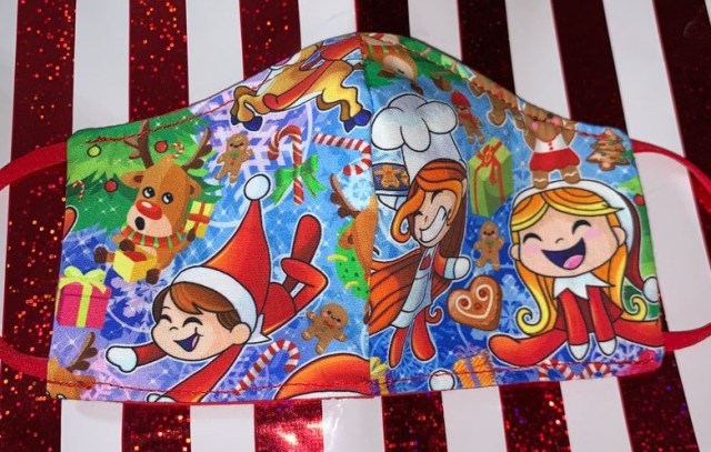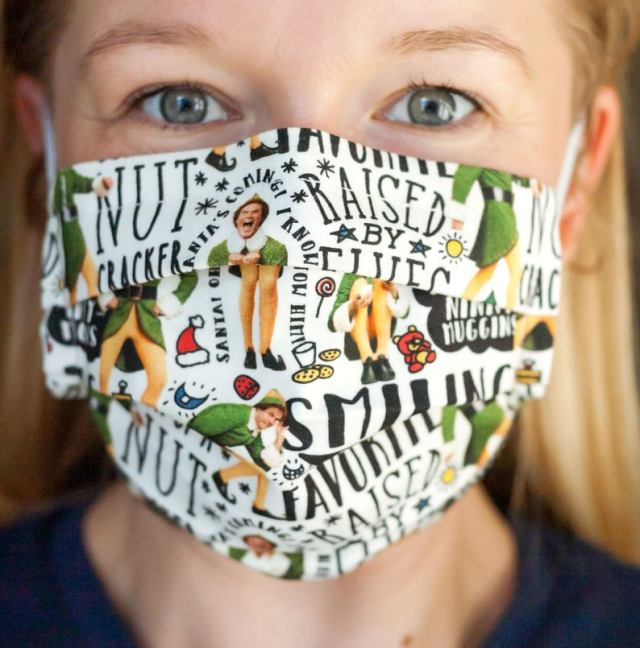 How cute is this Buddy the Elf print with fun sayings like "smiling is my favorite"? This mask is our favorite, for sure.
