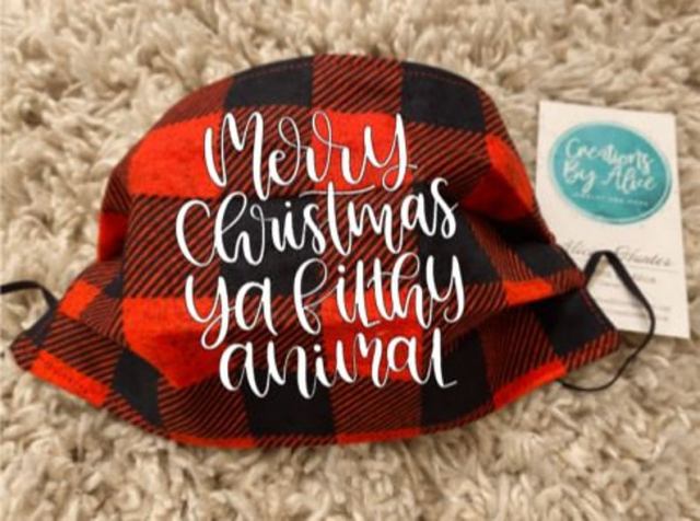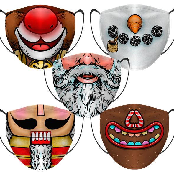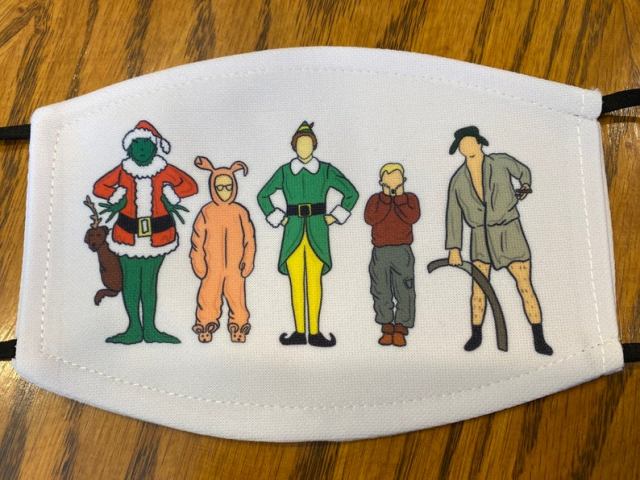 Show your love of Christmas movies with this mask that has Elf, A Christmas Story, Home Alone and The Grinch.