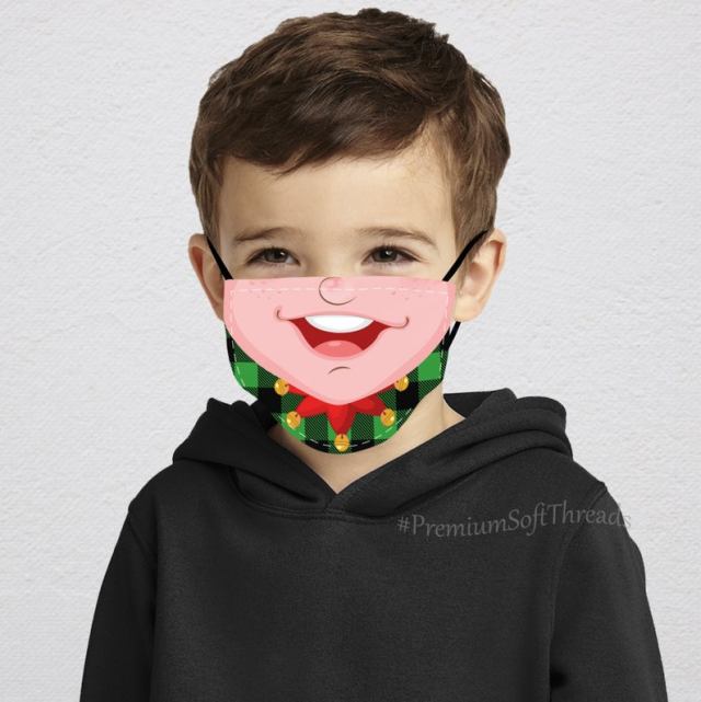 Whether you have plans to hop aboard a holiday train ride or you are dropping off some holiday cookies for a neighbor, these festively-themed face masks for kids will share the holiday spirit and keep you safe at the same time. Scroll through to see our favorites.