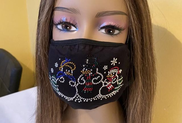 Going on a fun family adventure? Dress up your look with this blinged-out holiday mask.