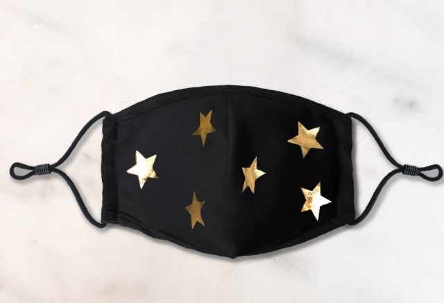 We love the subtlety of this mask that's classic black with gold stars. It's super soft for everyday wear and has a pocket so you can insert your filter.