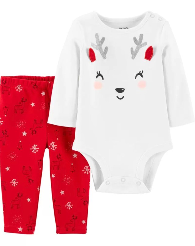 2-Piece Christmas Reindeer Bodysuit Pant Set