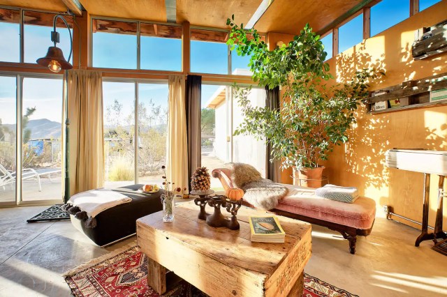 With an inside and out desert atmosphere and surroundings as colorful as the house itself, this retreat includes a great outdoor space that includes a hot tub and lounge space. Two minutes from downtown Joshua Tree, too. 4 guests/2 bedrooms/2 beds/2 baths Joshua Tree, CA—Launch Pad—Book Here!