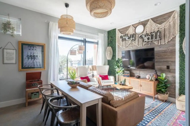 Sure seems like Nashville knows how to rock colors and music. This apartment is an ode to the country music queen herself and even comes complete with selfie wall. 6 guests/1 bedroom/4 beds/1 bath Nashville, TN—The Dolly Apartment on Music Row—Book Here!