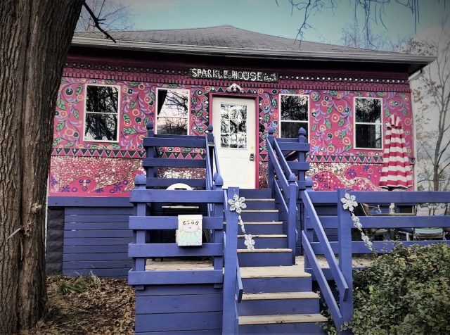 This sparkly (yes, sparkly!) house comes with a studio and art supplies to use during your stay. Not only is the exterior beautiful; you'll definitely want to let your artistic side out on this vacation. 4 guests/2 bedrooms/3 beds/1 bath Gary, IN—Sparkle House—Book Here!