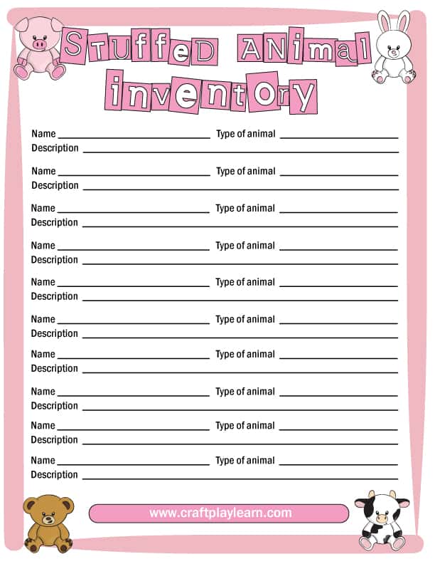 Angela Milnes from Craft Play Learn has the perfect boredom buster for the younger set. This stuffed animal inventory is a great way for kids to use their imaginations, practice writing and come up with stories for their stuffies. Get your printable version here.