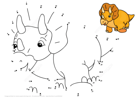 This activity is two-fold: first, kids have to connect the dots to show the image, and then they get to color it! Choose from dinosaurs like this triceratops or pick your favorite animal. All the printable choices are here.