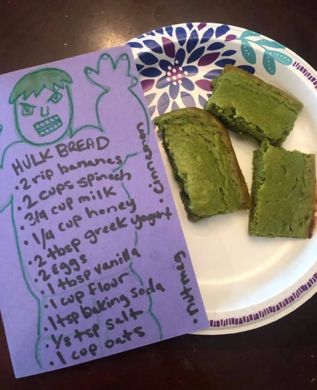 Want to get your kids to eat spinach and earn cool mom points? Of course, you do! Bulk up like the Hulk and gain superhero strength after making a batch of "Hulk Bread" or spinach muffins, like this recipe from Super Healthy Kids. Have your superpowered chefs help you with baking this tasty treat, and then you can all pretend to have hulk strength when you eat it.