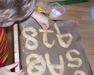 Cooking and counting go hand in hand and pretzels are easy to make. We love What We Do All Day's brilliant pretzel game using bread dough, salt, butter, a brush and a ruler. Besides practicing letters and numbers, little kitchen helpers can count out the dough pieces and measure the length of each rolled pretzel. We're sure these hot buttery treats will go fast!