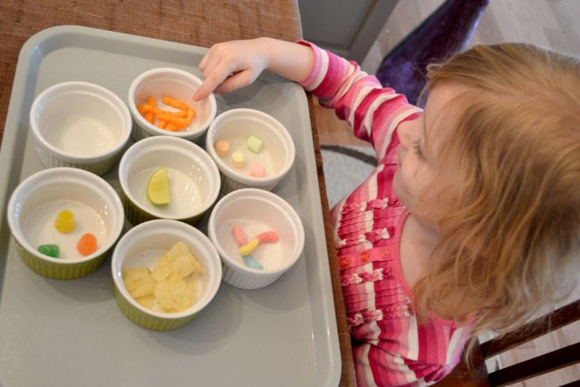 Keep 'em guessing (and fully engaged) with this flavorful cooking game dreamed up by Create.Play.Travel. You'll need a muffin tin, food, paper and pen. Let your little one try the item (you can blindfold her too!) then say whether it's sweet, sour, spicy, salty or tangy. When cooking a meal have your kids decide the taste of the main ingredients.