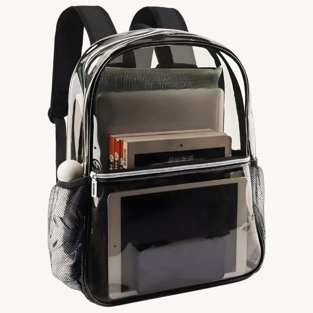 A sturdier, upgraded clear bag made from thick TPU material (aka: no cracking, no weird plastic smell). Comfortable straps + roomy compartments = a clear winner. Available in 7 colors.