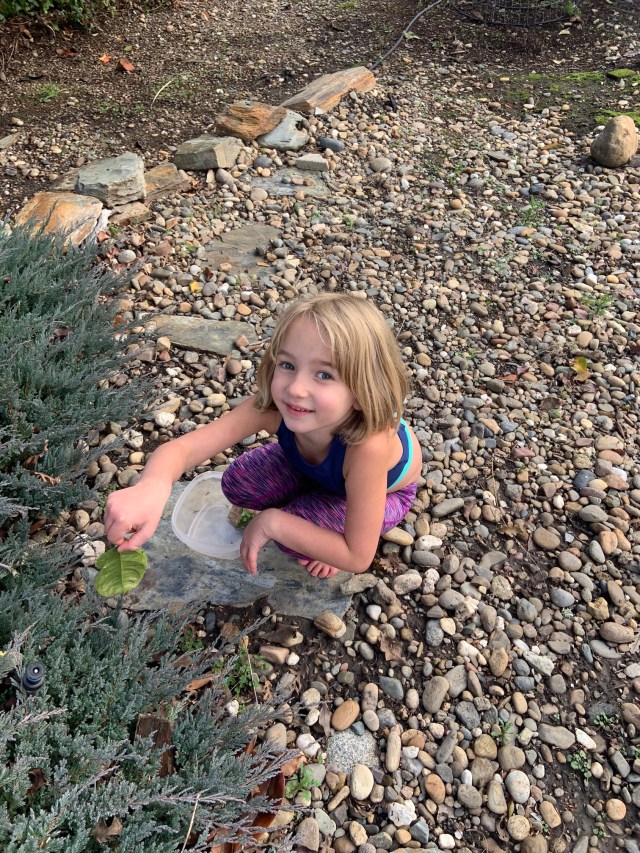 Today was one of those days when I was struggling. I had a bunch of work I needed to get done, I wanted to do a long workout to make up for not working out at all yesterday, I had cooking to do to prep for the next few days and Meadow just wanted to play with me. It’s so easy to write off these kinds of days—and I know all us parents have them—and just assume we will find moments to connect tomorrow. But, today Meadow was my teacher. We came back from a walk and she said, “Let’s find some pieces of nature, Mommy.”