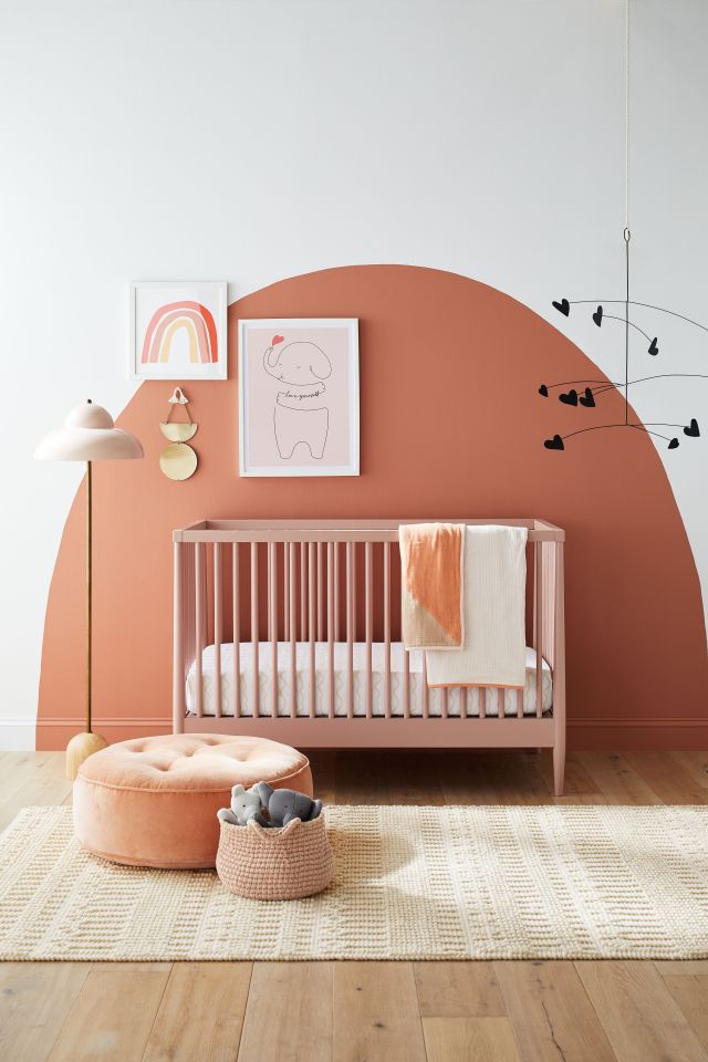 This blush crib is a nice alternative to the tradition wood or white treatment. The simple design seamlessly coordinates with the remainder of the new lineup of blush-colored goodies.