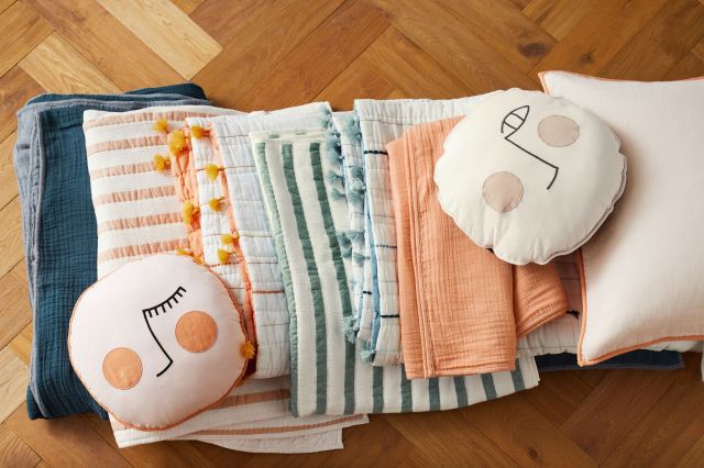 Crate & Kids' spring lineup is packed with cuddly textiles like this quilts and blankets. Made with organic cotton and in gender neutral colors, these pieces easily transition from toddler to big kid.