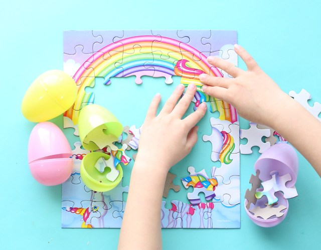Teamwork! Easter egg hunts are extra fun when you put individual puzzle pieces in each Easter egg and have your little bunnies work together to make a puzzle for a prize. Hop over to It’s Always Autumn for details and the printable instructions.