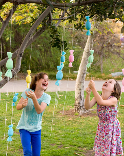 Poppin’ down the bunny trail? Bigger rabbits will enjoy pulling and popping to get their tiny treasures, almost like little piñata eggs. You’ll need plastic eggs, streamers and string. Skitter over to Studio DIY to put a little bang in your Easter egg hunt.